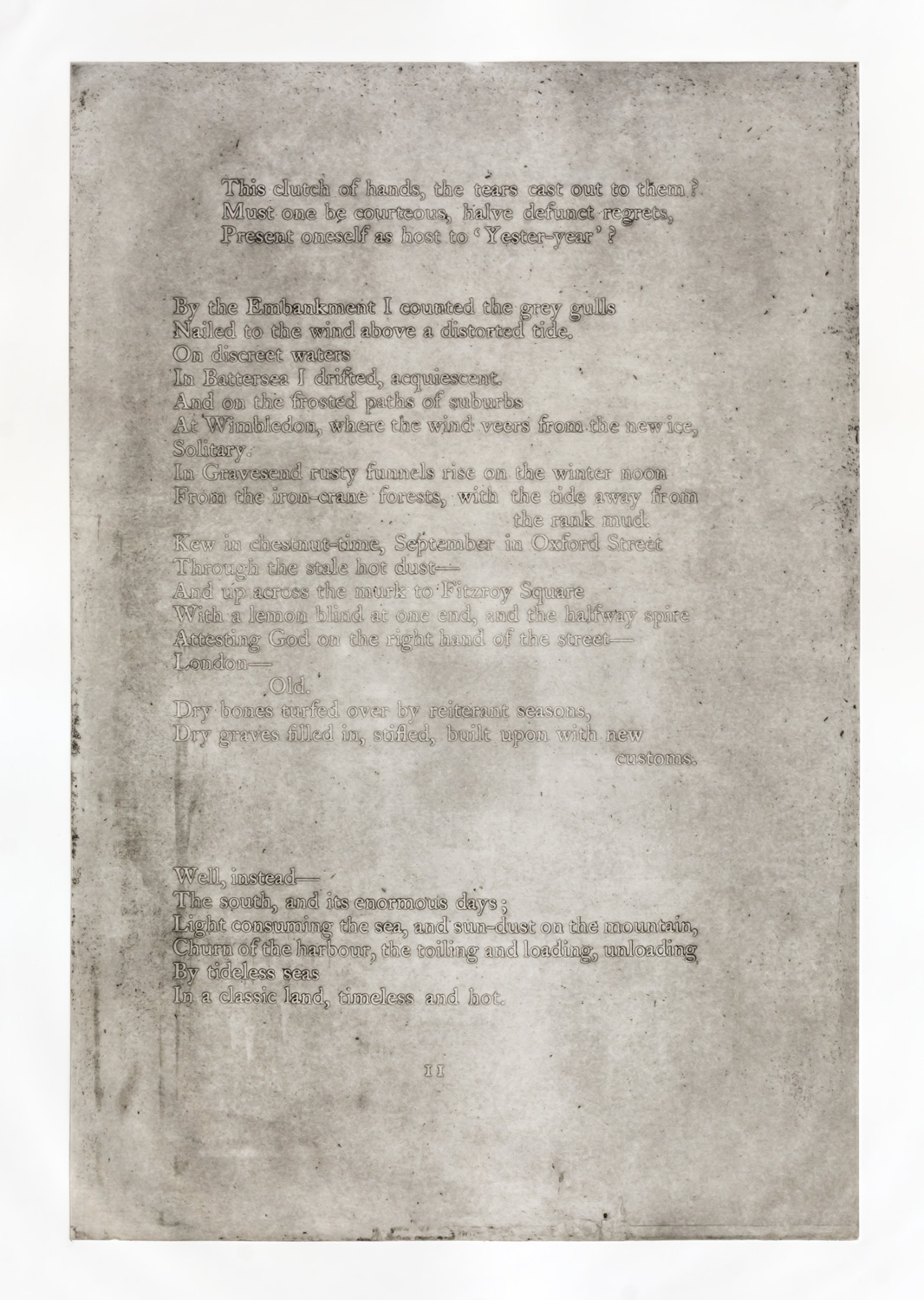 Verket er en del av Ane Thon Knutsens aktuelle utstilling Nancy Cunard’s Parallax – Your hands will always be covered in ink som er å se i Norske Grafikeres galleri frem til 24. mai 2025.
