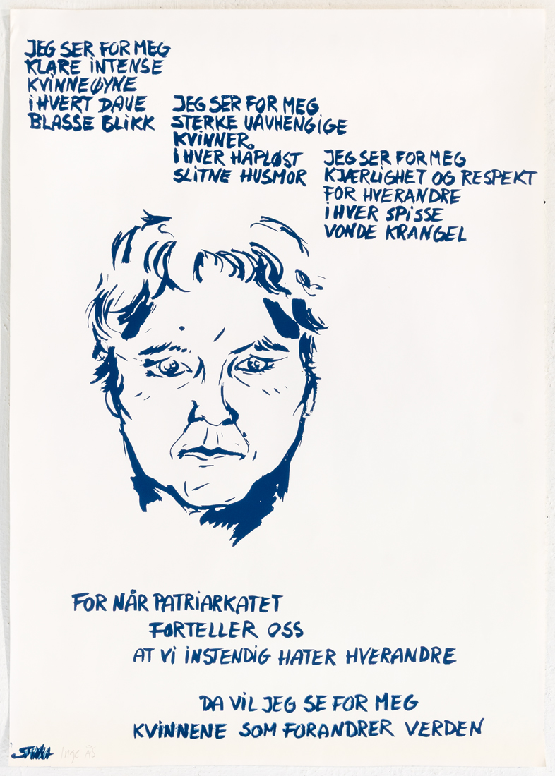 Restlageret av plakater ble reddet da Kvinnehuset måtte stenge i 1989. Pakker i gråpapir i forskjellige størrelser har fulgt meg i mange år, fra å ligge under senga i diverse kollektiv, til oppbevaring på loft og kjellere. Gjennom bokprosjektet «Vi spiste, sov og drakk feminisme» (lansert sept. 2020), og utstillingen min på Akershus kunstsenter våren 2020, og Kvinnemuseet i 2022, kom de fram i lyset igjen. Noen er avbildet i boka – men slettes ikke alle. En oversikt over flere finner du under galleri på www.sfinxa.no og under plakater på www.ingekunst.no